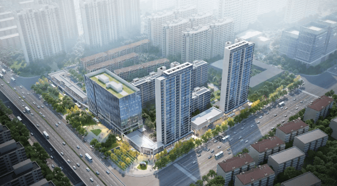 建筑规划:项目整体规划集住宅、商业、办公为一体,其中商业办公楼为 11 层,商业 + 物业配套用楼为 2 层沿街店面房。住宅方面共计 5 栋住宅楼层,2 栋 26 层高层,两梯四户,3 栋低密多层 8-10 层,一梯两户。
