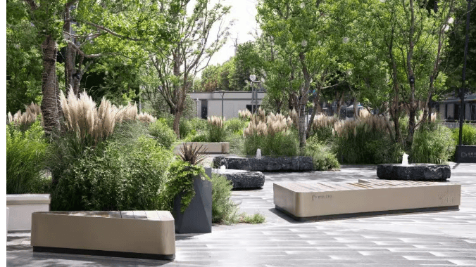 景观设计:景观打造 “双公园” 体系,以都市自然主义的设计手法,打造了沉浸式的森活商街体验,创造一个个宜人驻足的街边绿色口袋。