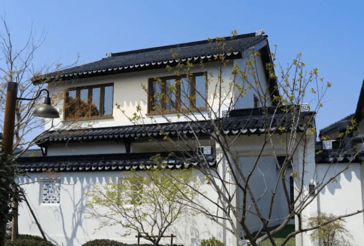 工艺:水性大理石漆外墙、仿木纹铝合金门窗、老石板街巷、传统小青瓦