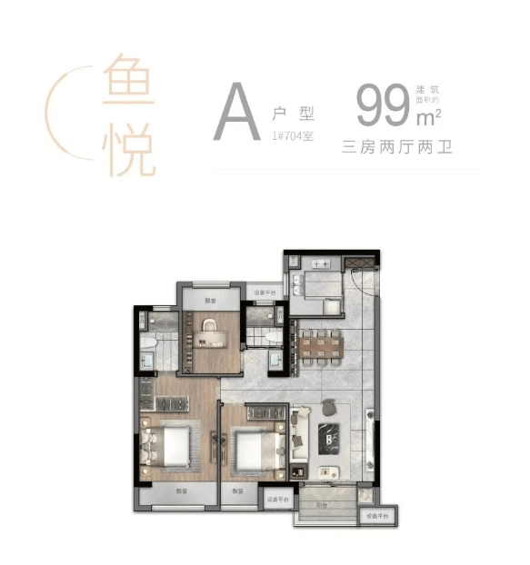 99㎡户型:3 室 2 厅 2 卫,同样是全明户型,南北通透,空间布局合理,居住舒适度高。