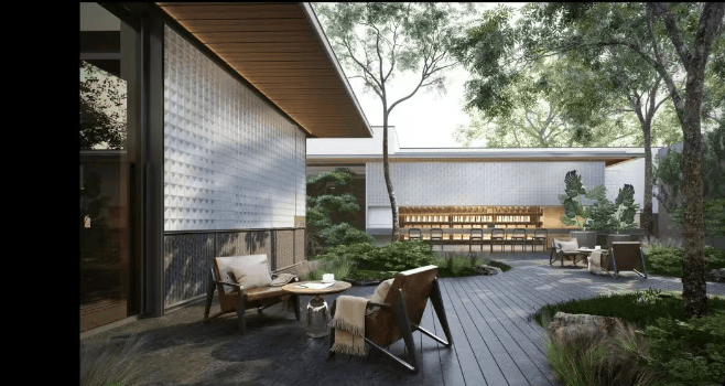 建筑设计:整体建筑风格现代简约,采用高品质建筑材料与精致的细节设计,外立面线条流畅,通过大面积玻璃与简洁的建筑轮廓,塑造出时尚大气的社区形象。