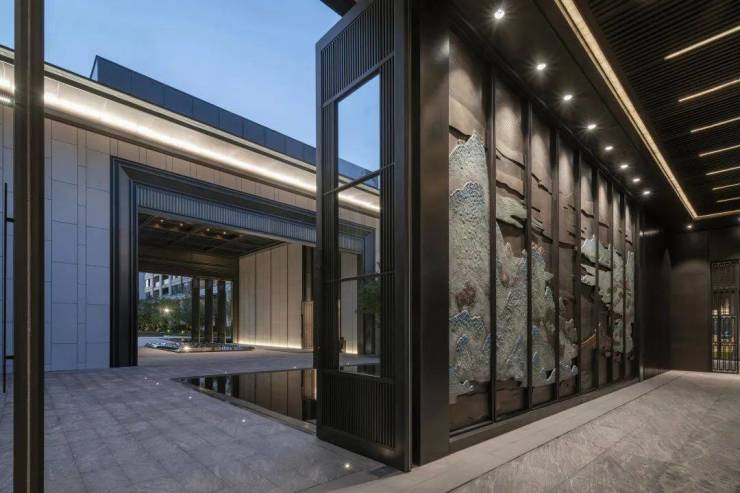太湖如院归家入境的设计匠心独具,结合住区内部轴线和湖园景观设置了“府园”,“忆江南”,“又见太湖”三大主题分区,充分融入了地域文化特色,阐释无锡城市底蕴,在有限的区域内由建筑与景观设置多重空间,承传统江南园林设计之巧思,动线自入口延伸至住区内部,涵盖较广而一气呵成。