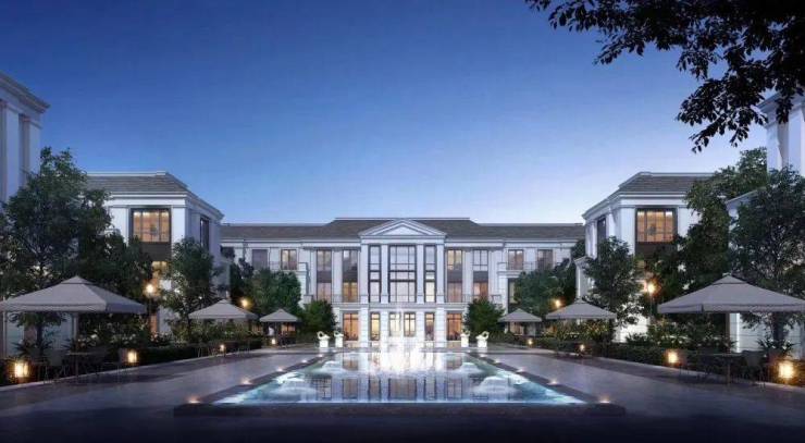 九龙仓在打造蔚蓝花园项目时,采用的是高级干挂石材+玻璃幕墙外立面的设计,品质感和时尚感兼备。讲究轴线对称的布局,更显气势恢宏,廊柱、斜坡面、老虎窗、孟莎式屋顶等法式风格元素,无处不流露着建筑的浪漫。