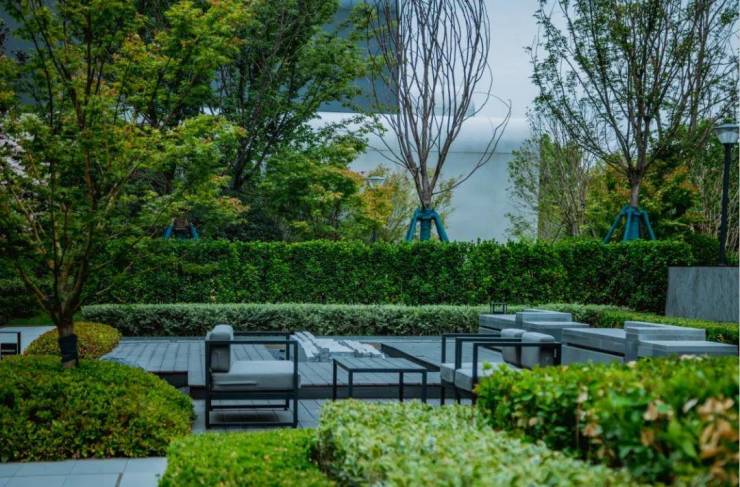 龙信臻园项目以新加坡式度假艺术景观,将自然绿意注入园区空间,用无处不在的多节点繁茂绿色,衔接各板块空间。