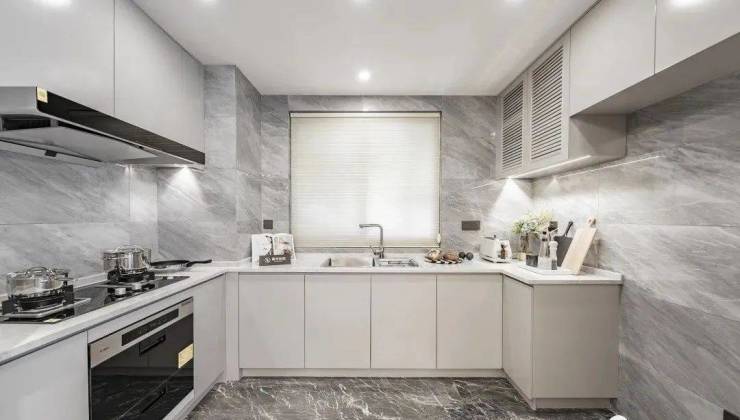 U型厨房,动线明晰,高端家电、厨具随意放置,尺度从容。