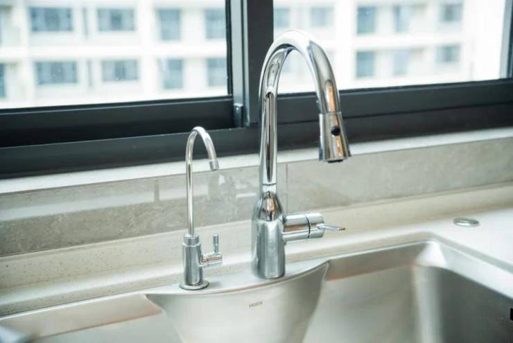 景瑞宸运天赋的厨房采用西门子厨房三件套油烟机、燃气灶和蒸烤一体机,方太水槽洗碗机,摩恩的抽拉式水龙头,3M净水器及垃圾处理器。