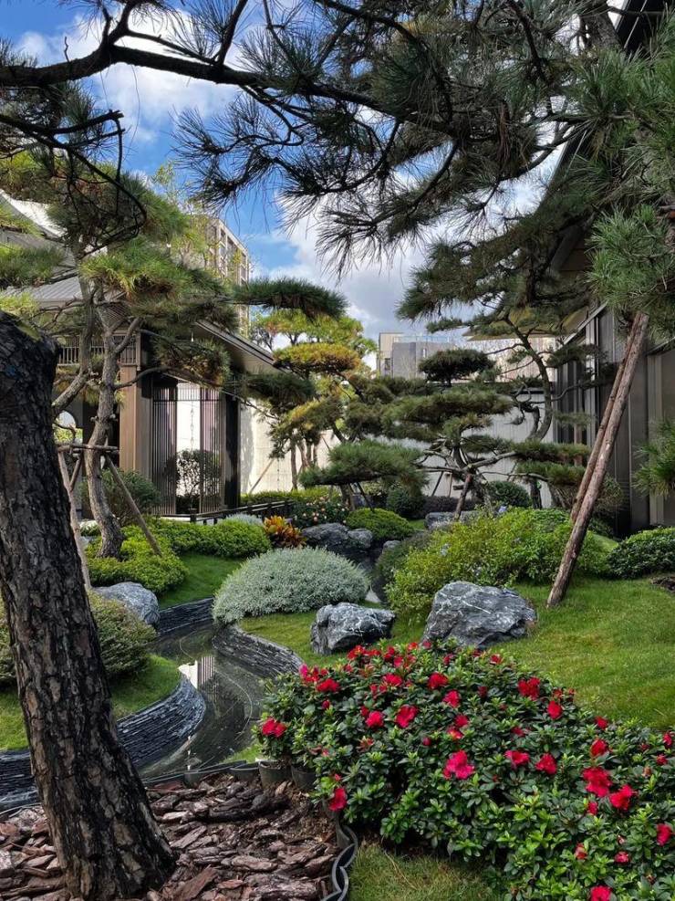 叠墅与排屋区则深度传承新中式基因,借鉴台州传统街巷布局,采用“悬山顶”多檐共生设计,搭配石材与金属线条,营造出典雅厚重的东方大宅风范。社区遵循“三进式”归家礼序,从大气的府门入口,到中央水景庭院,再到入户巷道,层层递进,彰显仪式感与尊崇感。