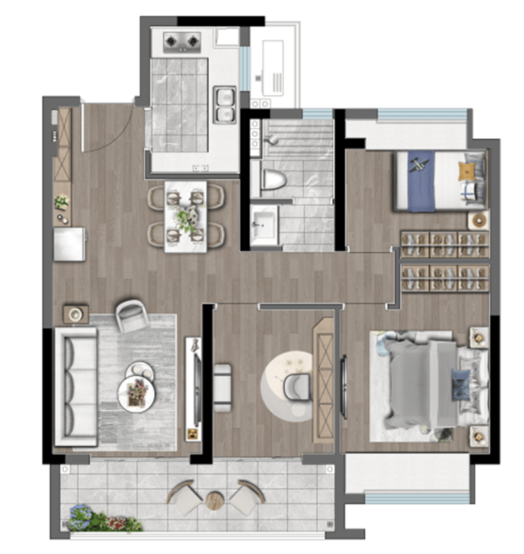 对于刚需住宅要求,和著的建面约89㎡小户型,基本做到了市场上建面约110㎡户型的功能,同时保证了每个空间的尺度合理完整。