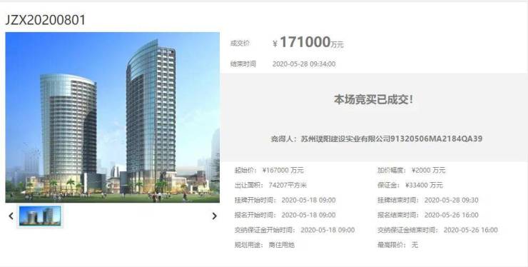 5月28日,青龙西路北侧、横塘河西路西侧地块进行限时竞价。该地块以171000万元的价格正式成交,竞得房企为阳光城地产,楼面价12802元/㎡。