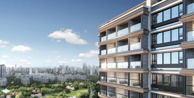 建筑设计:整体采用统一的设计语言,高层和叠拼产品全部采用弧形阳台形制,柔性的圆弧搭配简洁有力的直向线条,汲取了海派建筑的精华元素。