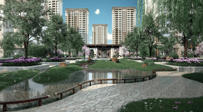 景观设计:整体为纯正的江南园林设计,合院中间的中央景观以松树、奇石、池水、亭子为元素,按照元末明初山水画的风格构建,大门入户按照传统风水布置,呈现水聚天地、四水归堂的风水布局,营造出幽深、宁静的居住氛围6。