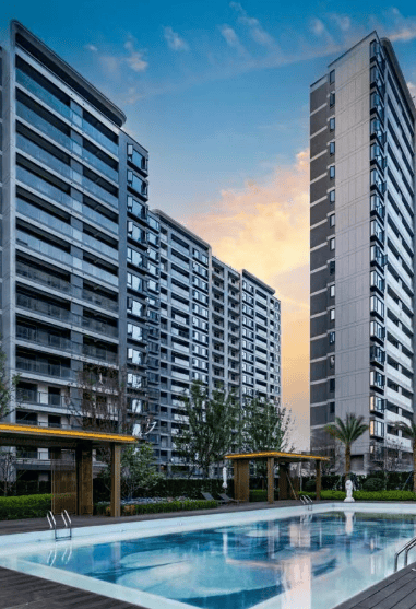 休闲设施:配备了丰富的休闲娱乐设施,包括儿童活力场、热血篮球场、羽毛球赛场、元气跑道、度假风格的游泳池等,还打造了奢阔的地下会所 —— 高定私人 CLUB,内部有共享 K 歌房、森氧健身房、冥想 YOGA 室、拟态冲浪乐园等。