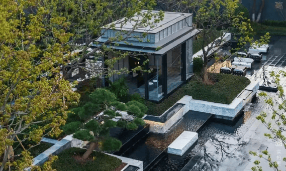 建筑设计:三启规制门庭搭配约 8 米定制非遗手工锻造锤纹紫铜威仪大门,尽显尊崇2。