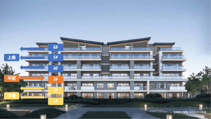 户型方面特别值得一提,几乎是苏州叠墅的新物种,布局上做了大胆的创新,打破了2层一叠的传统,中间做了平层户型。