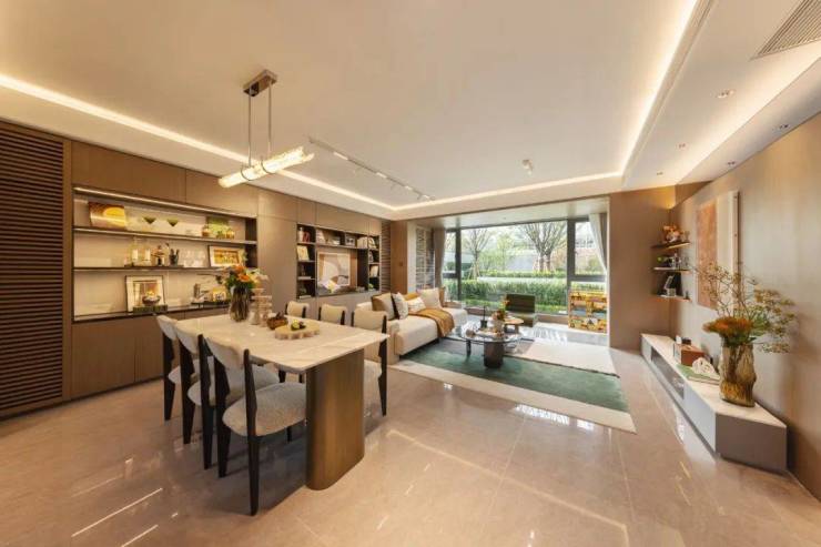 在三开间朝南的基础上,南向景观大横厅达到了约5.6米,这个尺度和空间甚至可以媲美150㎡、160㎡的改善级空间。未来,业主可以根据自身需求,设置开放式书房或是茶室,都绰绰有余。
