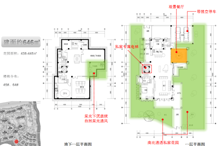建面约646㎡独栋别墅,花园面积438-445㎡