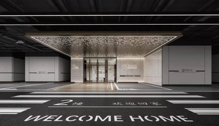出入口以星空为设计灵感,采用顶部全穿孔铝板,以“高品质”的付出,带给业主高贵优雅的归家感受。