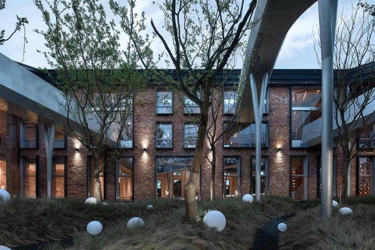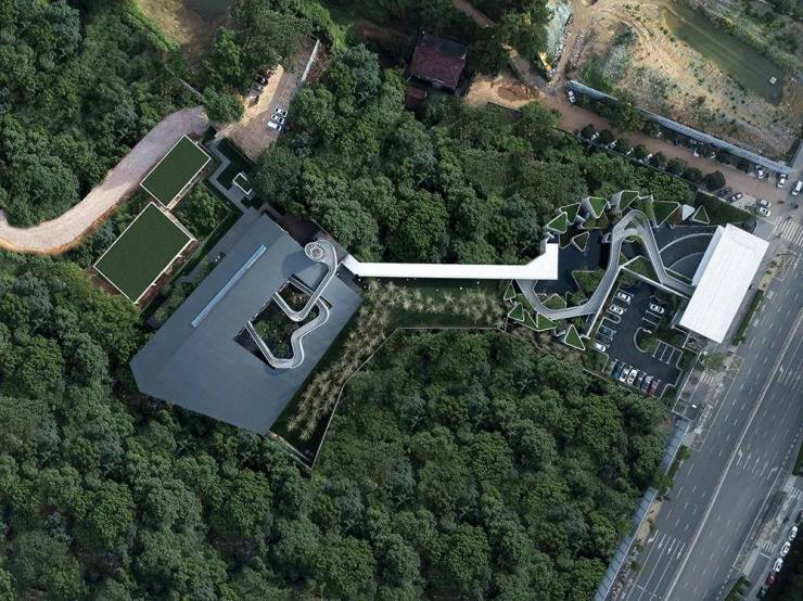 在这个独一无二的场地上,建筑根据现有条件延续设计。正如建筑师团队名字MonsterLAB所展示出的设计理念,城市、建筑被赋予生命,“山水”“生态”的话题被反复强调。