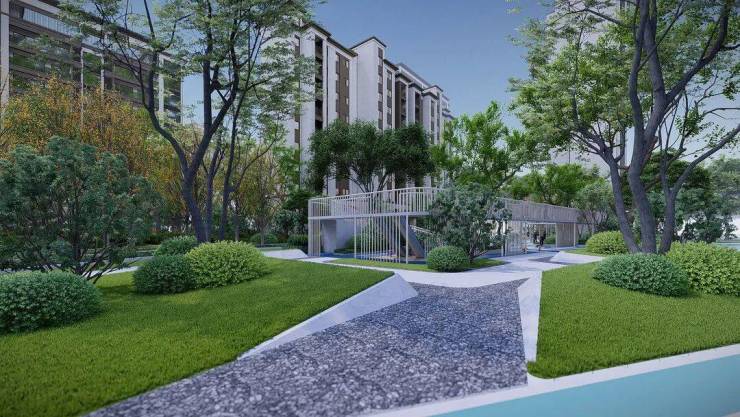 据了解,玖璋府项目总建筑面积为106867.4平方米,共736户,其容积率仅为1.8,整个小区由5栋小高层和9栋洋房构成,绿化率达到35%,是一个低密度、生态化的洋房住区,体现了绿色宜居的高品质。同时,小区与文体中心与景德园开放公共公园相邻,开成了玖璋府的一大特点——内外双园小区:外部是景德园公园大境,内部是全龄共享园林,内外双园交融,营造健康自然的居住空间。
