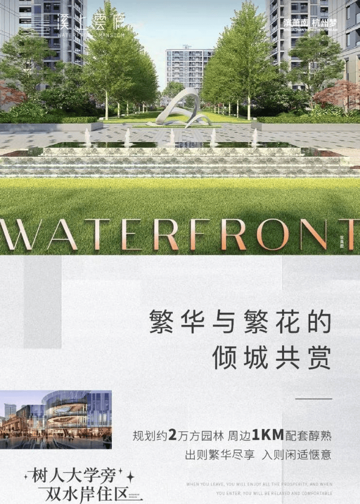 谈及城市的稀缺资源,河流与高校一定必不可少。溪上云庐先天资源禀赋优越,东西两侧溪水环绕,树人大学三面合围。优居于此,可以驻足河边,沉淀浮躁的身心,也能漫步校园,追忆似水年华的活力美好。