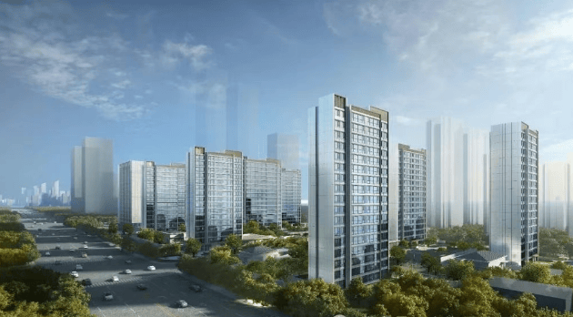 打造超薄边框设计,超画幅玻璃材质,搭配铝板、香槟色格栅,局部涂料,精饰金属线脚,赋予建筑晶莹温润质感,呈现轻盈明快的感官之美。