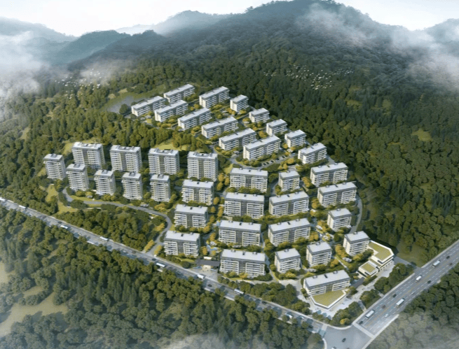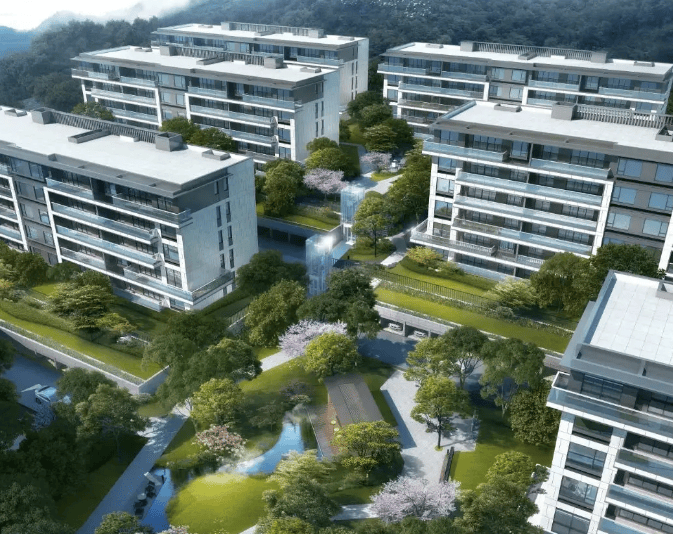 规划指标:占地约12.8 万㎡,总建面约22.5 万㎡;容积率 1.2,绿化率 35%+;由6 层洋房 + 11 层小高层组成,总户数930 户;车位比约1:1.2,人车分流,依山而建,景观层次丰富。