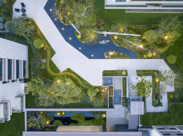 社区内部:依山造园,中央景观轴、儿童游乐区、健身区、邻里空间;自带社区底商(便利店、餐饮、药店);