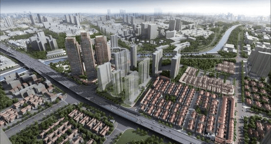 项目二期一共有两个地块(1#和7#),超高层+低密别墅的产品组合,将重塑板块天际线,成为区域内的新地标。分别位于一期项目南侧和北侧(就是下图两大块旧式里弄)▼