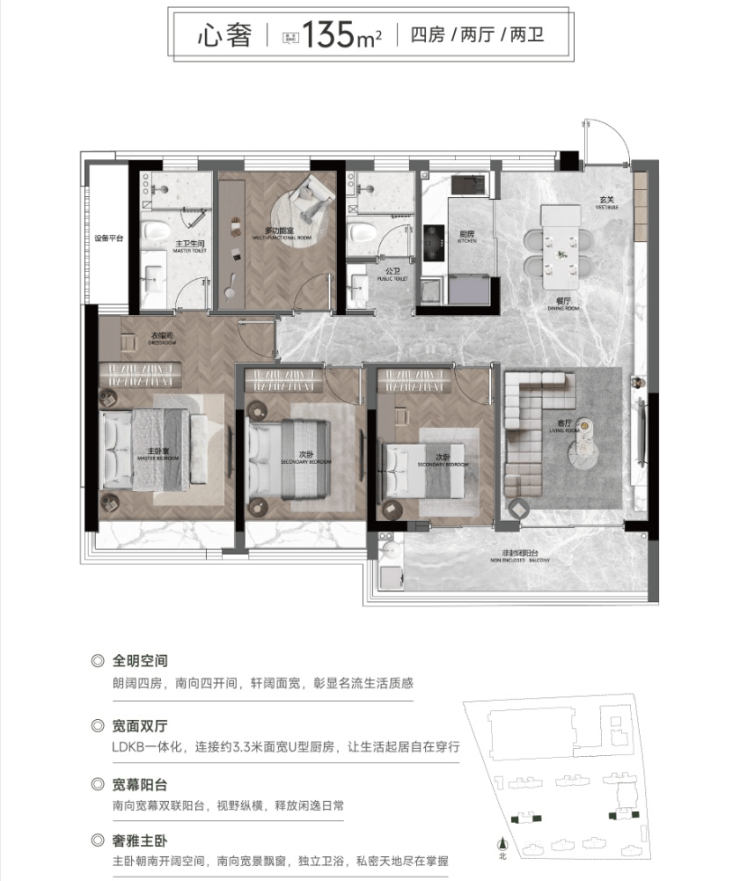 【户型面积】约105㎡、118㎡、134㎡、135㎡、144㎡、169㎡、188㎡