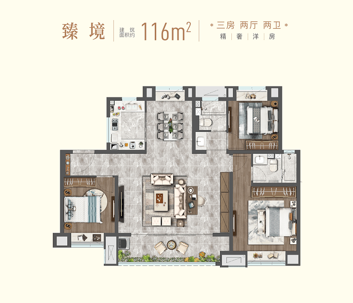 【臻境】建面116㎡ 三房两厅两卫