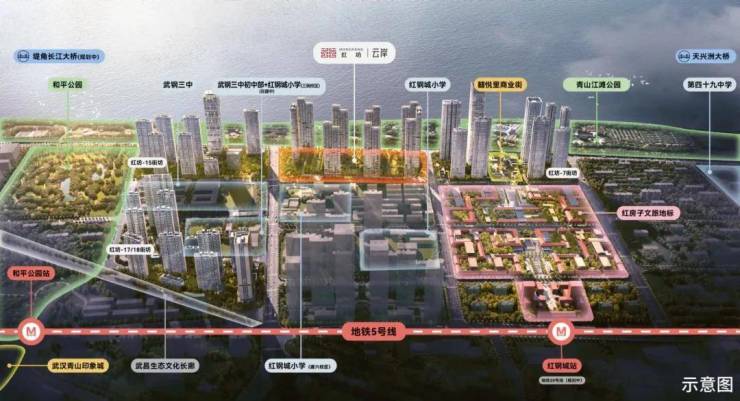 武钢三中初中部为青山滨江新建学校,关注度极高。该校与红钢城小学红钢三街校区同处17街坊地块,主体结构也已封顶。(备注:非对口划片承诺,华侨城红坊·云岸具体对口划片情况,以项目交付之后,教育主管部门的公告为准)