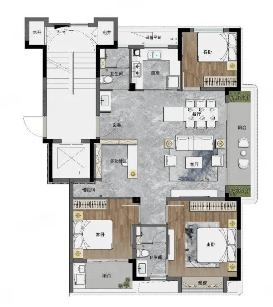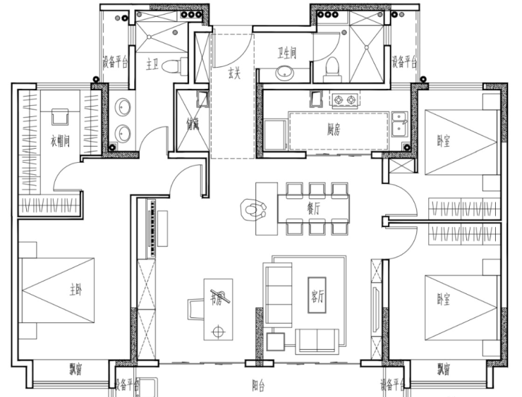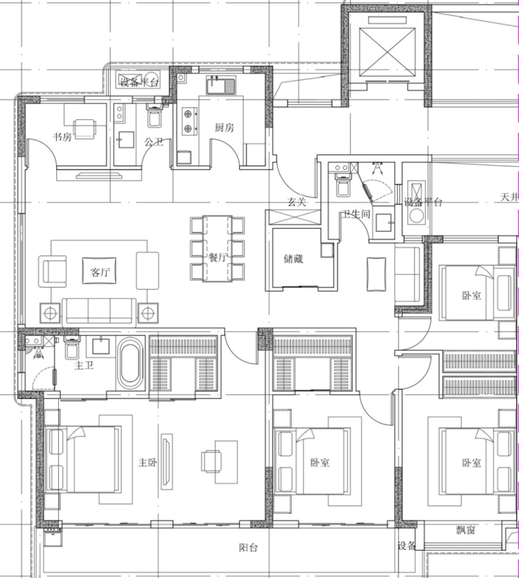 大老板 180平户型:四房两厅三卫,边套