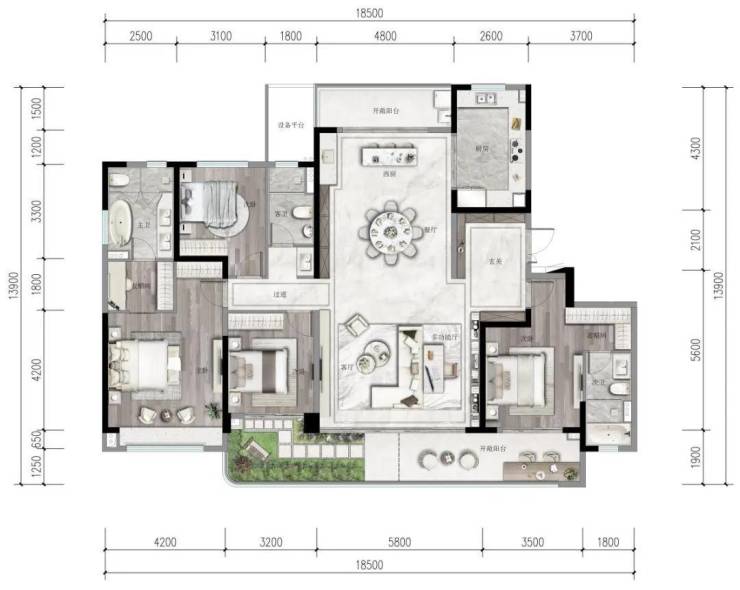 世界PLUS天际大平层,全明气派格局,南向三阳台大面宽。