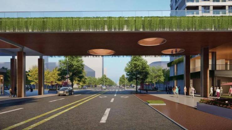 TOD交通枢纽引导人流聚集,地面交通体系与地下交通体系共同作用分散、引流人群,将社区的互交性进一步延伸至社区外,形成社区内外循环的立体交通体系。实现地下、地面、空中的室内外公共空间的一体化衔接。