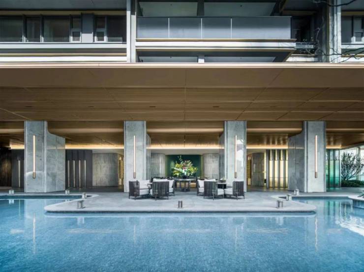 绿城春晓园从大门起就巧妙运用水景,社区景观轴有4处水景相连。进入社区,可见中央水景、层次水景和天幕泳池,辅以绿植和社交空间,归家时提供的情绪价值拉满。