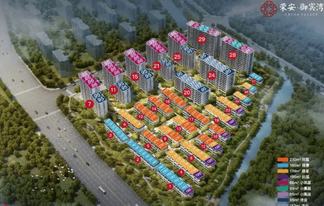 户型面积:小高层面积段为建面约 86㎡、89㎡、95㎡;洋房面积段为建面约 95㎡、116㎡;联排别墅面积段为建面约 150㎡、160㎡、175㎡、225㎡。