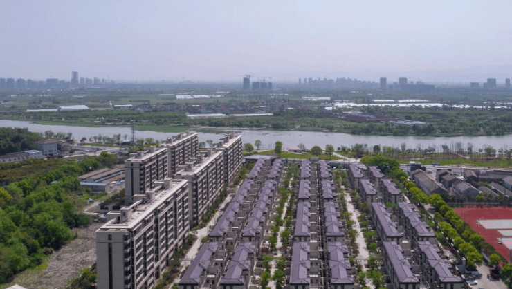 参数:占地约4.28 万㎡,总建面约9.5 万㎡,5 幢 9 层洋房 + 153 幢联排,总户数383 户