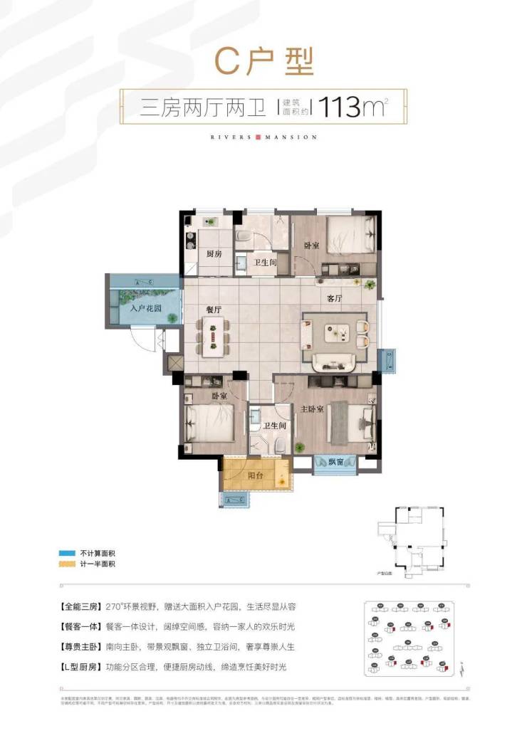 特别是前江上城建面约115㎡理想三房,户型方正,北阳台可拓展改造为书房,享受更高的得房率和江畔生活的美好温馨。三开间朝南,让阳光铺满生活;南向套房式主卧,带观景飘窗、独立卫生间,奢享尊崇人生;南北双阳台,多种“享”法,繁盛景致不止一面。
