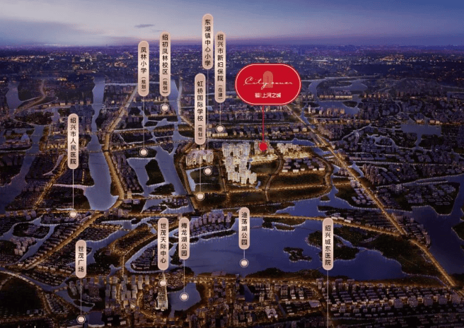 配套完善:聚合东湖镇中心小学、东湖镇中学城东部、绍兴市人民医院、绍兴中医院、3700 亩迪荡湖公园等资源;同时,绍兴市新妇保院(在建)、凤林小学(规划)、绍初凤林校区(规划)等也正加紧布局。