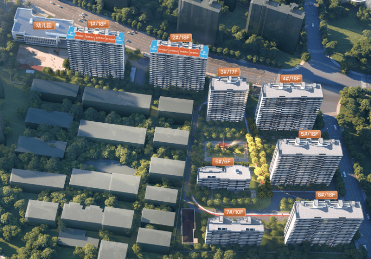 产品:8 栋(6 栋 17-18 层小高层 + 2 栋 6-9 层洋房),容积率 2.4,绿化率 35%