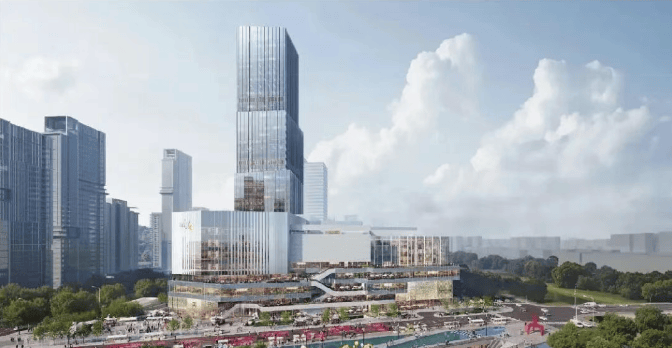 风格与进度:建筑为唐风中式,外立面石材 + 木纹铝板 + 全景玻璃,搭配宫廷式门头、中式水景园林、坡地台地景观;2025 年初开盘,2026 年处于建设中期(期房);