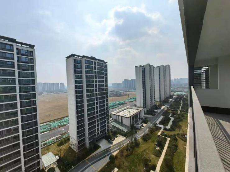 规模指标:共 14 栋(6 栋小高层 + 8 栋高层),总户数 1028 户;占地约 5.87 万㎡,建面约 11.74 万㎡;容积率2.0,绿化率35%;车位 1182 个(配比约 1:1.15),人车分流;纯毛坯现房(2025 年初已交付);