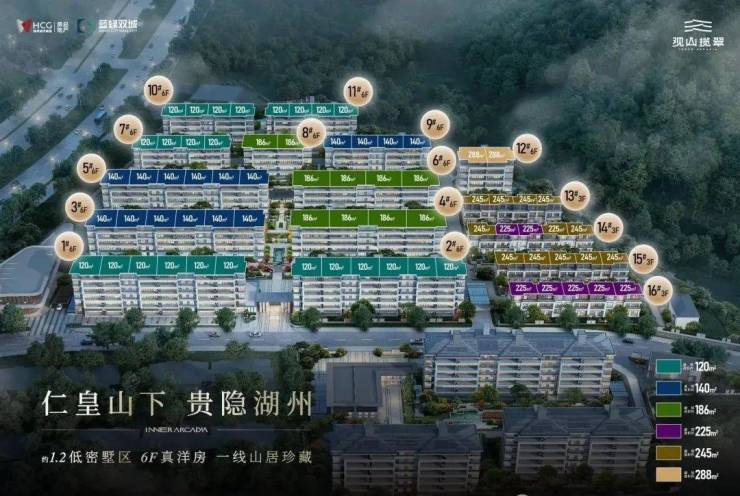 产品规划:293套山居洋房,6套揽山叠墅,19户现代东方合院