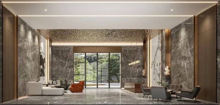 建筑设计:将极简主义思潮融入建筑设计,从 “书籍” 元素中抽取建筑线条灵感,采用高级简约的灰调立面、三玻两腔的巨幕玻璃,勾勒出富有层次肌理的建筑表情和艺术构思。