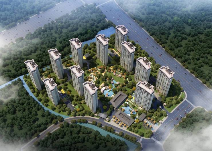 建筑:现代简约风格,板楼设计,“三进制园林” 布局,近 4 万方围合式中式园林,含狭长水系与 “园眼”“收腰” 等景观设计。