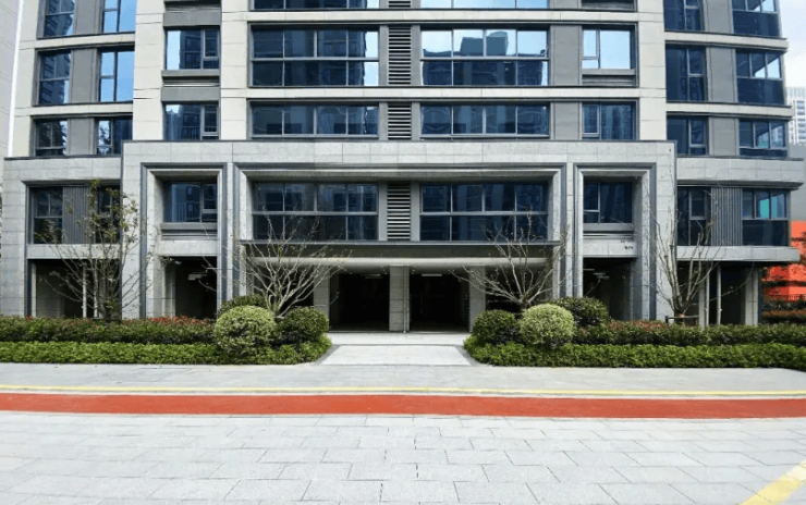 社区内部:近 1700㎡中央景观、儿童游乐区、健身步道、架空层泛会所;人车分流,地下车库精装入户,外立面为现代冷色调(蓝灰石材 + 大面积玻璃 + 金属百叶)