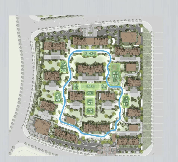 园林景观:以水为基底,打造 “一园一环一轴” 约 20000㎡全龄园林,一条休闲漫步环路串联起各大公共空间及宅间花园,还有约 300㎡阳光草坪。