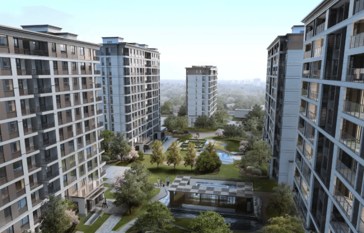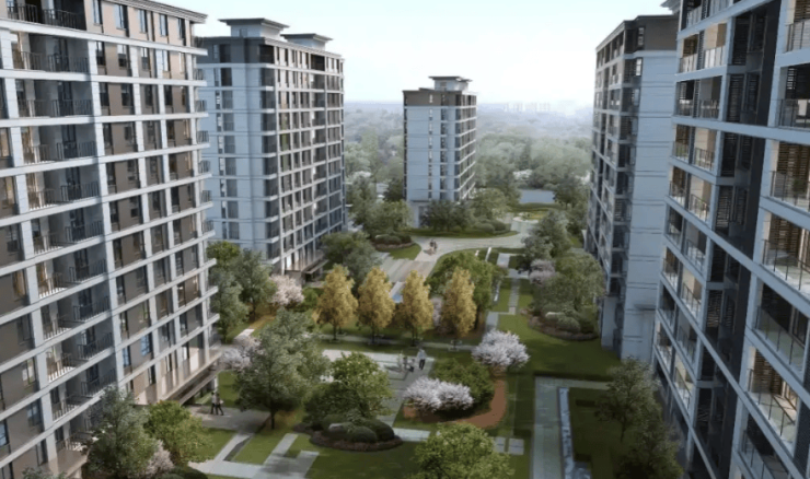 物业为慈溪市务实物业,物业费 2.0 元 /㎡・月;70 年住宅产权,2024 年 2 月 29 日已全部实景现房交付,即买即办证、即装即住;总占地约 66466㎡(约 100 亩),总建面约 189020㎡;规划 24 栋(22 栋 7–12 层纯板式洋房 + 2 栋 1.3 万㎡社区商业),总户数 942 户;容积率 1.99,绿化率 30.53%;车位配比 1:1.43(地下为主),人车分流,人脸识别门禁;外立面是米色真石漆 + 铝板线条,现代简约风格。