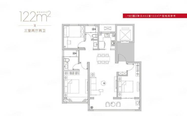 3室2厅2卫1厨, 建面122.00平米