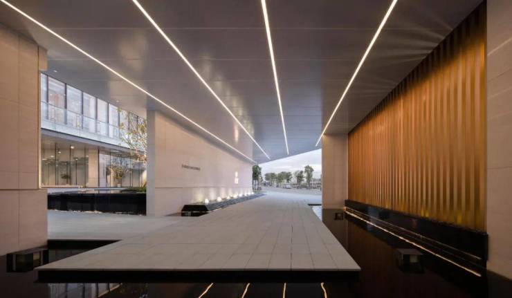 门廊顶部围合空间,营造步入内部空间前的完整仪式感,暗示空间的转换,从外部环境向建筑过渡。